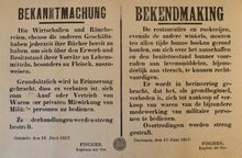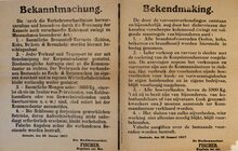 Formaat : 31 x 51 cm. Kennisgeving uitgaande van Kapitein ter Zee Fischer betreffende de uitgave van nieuwe controlekaarten aan de weerbare bevolking van 15 tot 40 jaar