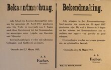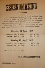 Formaat : 33 x 50 cm. Kennisgeving uitgaande van Kapitein ter Zee Fischer van een controlevergadering van de mannelijke inwoners van 15 tot 40 jaar.