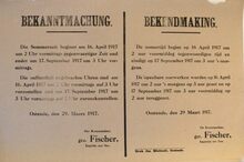 Formaat : 36 x 55 cm. Kennisgeving uitgaande van de Plaatscommandant Fischer betreffende de aanvang van de zomertijd