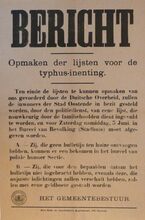 Formaat : 55 x 37 cm. Kennisgeving uitgaande van het gemeentebestuur betreffende het opmaken der lijsten voor de tyfusinenting