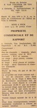 Formaat : 50 x 32 cm. Kennisgeving uitgaande van het bestuur betreffende de verkoop van voedingswaren en toiletartikelen in lokaal Terrasse