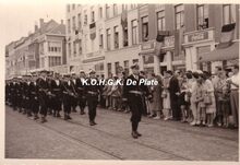 Formaat 10.5 x 7 cm. - Peloton van de Belgische Zeemacht met pelotonoverste korvetkapitein Depiere Carlos op de Visserskaai