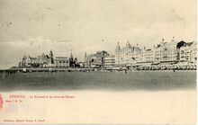 V.l.n.r. : Hôtel Continental, Hôtel de l'Océan, Hôtel de la Plage, Hôtel Beau Rivage, Splendid Hôtel. Uiterst rechts het Koninklijk Chalet.