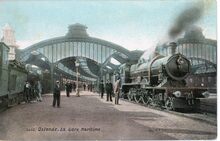Zicht op de stationsoverkapping en let op de niet verhoogde perrons.