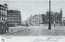 Ostende - Marché aux Viandes. N.508 J.-B.P. Ostende. Deze markt bestond uit verschillende rijen overdekte stalletjes, vernield tijdens de Tweede Wereldoorlog.