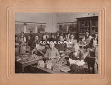 Foto 16.5 x 12.5. Klasfoto Leraar Corvelyn , eveneens op de foto Mijnheer Nenquin en Herling theo