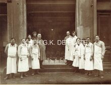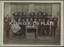 Formaat : 12 x 17 cm. - Herinnering aan de Van Nesteschool in de Schippersstraat . Directeur Valentin Dekeyser (zittend in het midden), Staand: Leraren Coron - Robert Patfoort - H. Degraeve - H. Cambron - S. Derock - Alleman - Zittend: Mevr Decock-Vanwijnsberge - mevr Van Humbeke-Dechef - mevr Corvelein. "Schrijfwijze van de namen nog nazien" (Georges Van Duyvenboden)