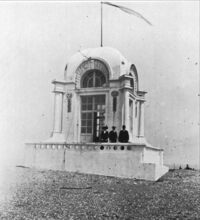 Op de achtergrond "Sanatorium Maritime Saint-Vincent de Paul". Sportstraat 1. Directeur : Dokter A. Delcroix
