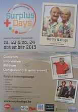 Formaat : 60 x 42 cm. Genieten. Informeren. Beleven. Ontspanning en amusement. Surplus belevingslounge. Workshops, dansen, optredens, lezingen : beleggen, successierechten... infostands... alles voor de rijpere levensgenieter. Nicole & Hugo. Luc Caals. De Melando's