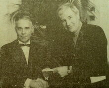 Formaat : 55 x 30 cm. Minister Marc Eyskens, Jos Vanderloo (sic),Ann Christy, Carl Huybrechts, Urbain Braems, Combo Jean-Jacques