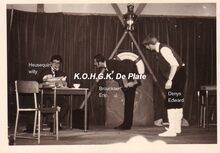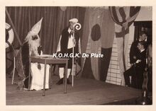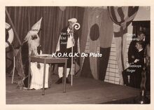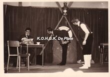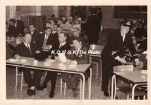 Foto 10 x 7. Sinterklaasfeest zeevaartschool Oostende december 1966.(Foto genomen in de refter) V l n r De Cock kapitein - Westerlinck Cdt directeur - De Smet kapitein - De Mayer officier-leraar 2de rij Laloo studiemeester