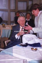Formaat : 15 x 10 cm. - Β Feest in Hotel BurlingtonΒ naar aanleiding van de voorzitterswissel vanΒ Van Iseghem August enΒ VilainΒ Omer. Links, Vilain Omer en Van Iseghem August houdt een toespraak. In het midden, mevr. Van IseghemΒ (24 april 1999).
