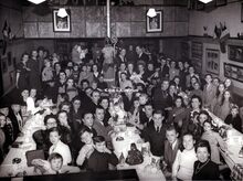 Formaat :Β Β 9 x 13 cm. - Hulde aanΒ FernandΒ MontenyΒ (de witten van de koaje) (1912-1991) door J.B. Dreesen, in cafΓ© "Rodenbach" op het Mijnplein,Β hoek Sint-Franciscusstraat,Β naar aanleiding vanΒ de 50e huwelijksverjaardag met Georgia Mestdagh.