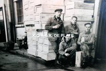Formaat : 12 x 17 cm. - Werknemers van de visgroothandel Aspeslagh nemen even rust