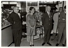 Formaat : 13 x 18 cm. - De zaak werk in 1967 officieel overgenomen door zoon Francis Proost van vader Prosper Proot. Op de foto staan v.l.nr. Prosper Proot (drukker) ; Marie-Jean Proot-Cattoor ; Felix Porta (Schepen) ; ? ; Francis Proot (zoon van de drukker)