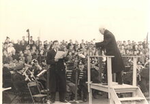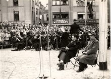 Formaat : 13 x 18 cm. - De inhuuldiging ging door op het Vissersplein, waar de cantate "Hulde aan onze bevrijders" van Octaaf Defoor ten gehore werd gebracht.