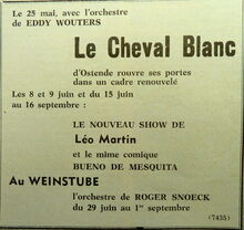 Foto : De heer en mevrouw Smets worden door het stadsbestuur ontvangen naar aanleiding van 25 jaar "Wit Paard". We zien hen op het balkon van het stadhuis, met o.a. burgemeester Jan Piers, de schepenen Roger De Kinder en John Lauwereins. Links, de directeur van het toerismebureau Alfred Rigaux (Photo Edmond)