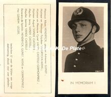 Formaat : 9 x 14 cm. - Hij was hoofdpolitiecommissaris van 1955 tot aan zijn overlijden in 1967. Hij trad in dienst als adjunct-politiecommissaris in 1937. Tijdens de Tweede Wereldoorlog werd hij door de Duitse bezetter tot driemaal aangehouden en kort voor het einde van de oorlog opgesloten in het concentratiekamp van Neuengamma. Hij overleefde de oorlog en kwam terug in dienst. Meer literatuur in : Bijdrage tot de geschiedenis van de Oostende politie (1794 - heden) / Daniel Deschacht. 1987. p.43-45