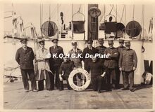 Formaat : 18 x 13cm. - Enkele douaniers, vertegenwoordigers van de RAC en AA, en enkele bemanningsleden van de carferry "London-Istanbul" poseren op het achterdek;