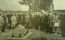 Formaat : 18 x 13 cm. - Inhuldiging herdenkingsplaat voor de vermiste en de politieagenten die voor het vaderland stierven. Plechtigheid nabij het Gerechtshof, toen dienstdoend stadhuis en centraal politiecommissariaat.