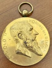 Op de keerzijde : horizontaal INAUGUREE / PAR / S.M. LEOPOLD II / ROI DES BELGE / LE 4 SEPTEMBRE / 1905