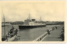 Postkaart 2406. Ostende - Sortie de la malle (sic). De "Marie-Henriette" werd gebouwd bij John Cockerill en kwam in dienst in 1893. Het schip haalde 22,2 knopen en was het snelste passagiersschip ter wereld op dat ogenblik. Zo behaalde de lijn haar eerste internationaal rekord. Op 24 oktober 1914 liep de "Marie-Henriette op de rotsen te Harfleur en zonk. Alle opvarenden met inbegrip van 650 gekwetste soldaten werden gered.