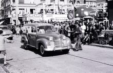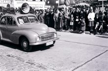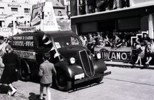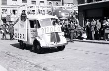 ReclameautoΒ van de firma C. Brackx, Torhoutsesteenweg 1-3, Stene Oostende,Β in de zomercavalcade in de Driftweg te Bredene. Reclame voor motos en wasmachines Gloria.