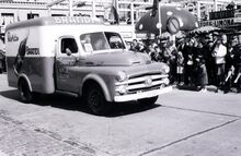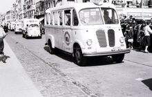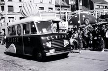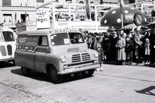 Bedford reclamewagen van wasmachines Primus in de Driftweg te Bredene tijdens de zomercavalcade.