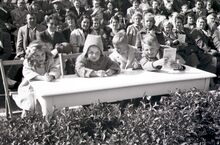 Enkele jeugdige toeschouwers van de zomercavalcade in de Driftweg te Bredene.