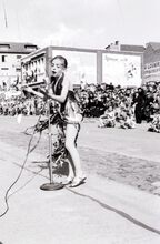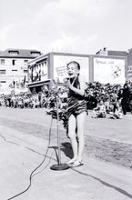 Zomercavalcade te Bredene : een jong zangeresje geeft het beste van zichzelf in de Driftweg.