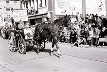 Paard en wagen uit de zevende grote zomercavalcade van Bredene in de Driftweg.