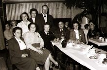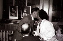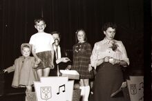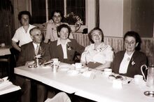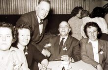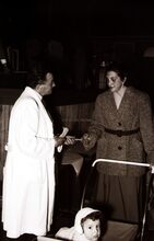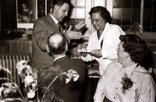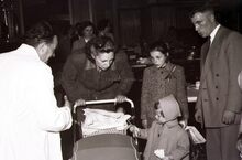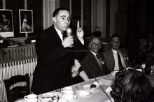Formaat : 13 x 18 cm. - Schepen Raymond MiroirΒ spreekt het publiek toe. Rechts naast hem,Β Henri Edebau