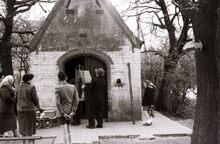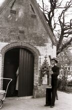 Terug opbergen van het Mariabeeld uit de Mariaprocessie in de Visserskapel O.L.V. Ter Duinen, Klemskerkestraat te Bredene, waar het bewaard wordt.