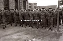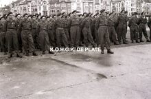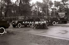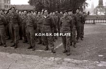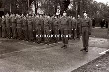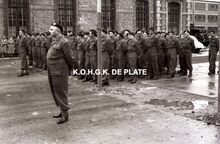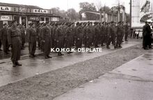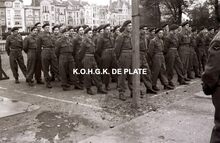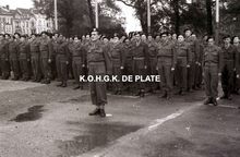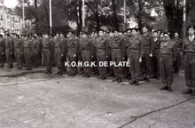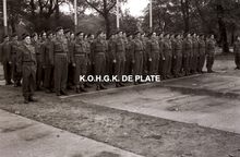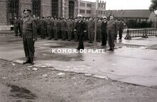 De manschappen staan opgesteld nabij de marinekazerne. Op de achtergrondΒ De Graaf Smet de Naeyerlaan.