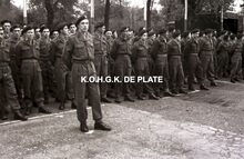 Plechtigheid bij de Territoriale Wacht voor Luchtafweer nabij de zeemachtkazerne "Bootsman Jonsen".Β Demonstratie van de plaatselijke afdeling van het 27e bataljon. Waren aanwezig : Kolonel Vranckx en Michel Surmont, stadssecretaris.