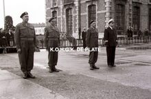 "Links, AndrΓ© Nolf, reservekapitein-commandant. Hij was onderwijzer in de stedelijke basisschool Ernest Van Glabbeke. Ik zat bij hem in de klas" (Georges Van Duyvenboden)