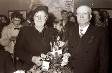 De voorzitter van de Slijkense foorkramers en zijn echtgenote bij ontvangst op het Bredens gemeentehuis.