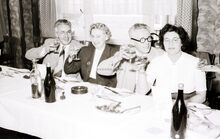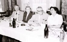 Feest bij de kappers.Enkele deelnemers en hun dames op het banket van de vereniging.