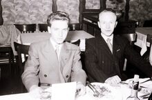 Veldmaarschalk MONTGOMERY en burgemeester Adolf VAN GLABBEKE op de Visserskaai bij het daar opgerichte herdenkingszuiltje. Links, schepen Maurice QUAGHEBEUR