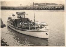 Formaat : 8,5 x 13 cm. - Een oude loodsboot uit de tijd toen er nog met zeilen gevaren werd. De P op de zeilen wijst op Pilot (loods). De loodsen van onze kusthavens en vooral van de Scheldemonding waren zeer dikwijls Oostendenaars die Vlissingen als tweede vaderstad hadden (Omer Vilain)