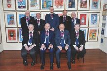 Enkele deelnemers aan de geslaagde recordpoging om de langste linosnede te creΓ«ren : kunstenares Jasmine Dewolf, directeur Peter Defurne, leerkracht Kathleen Van Houtte, initiator Hans Vermersch samen met Steve Debusschere, Lut Rosssey, Nicole Zoete en Jan Dessein.