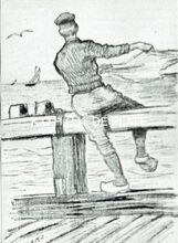 Afdruk van tekening. - Formaat : 13 x 18 cm. - Marinier de l'estacade