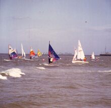 FormaatΒ : Β 9 x 9 cm. - Windsurfing ter hoogteΒ van het GrootΒ Strand