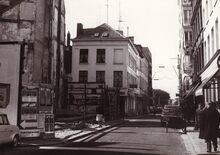 Het kruispunt Witte Nonnenstraat en Christinastraat.Op de achtergrond links het postgebouw.