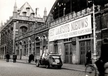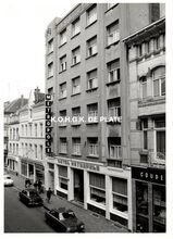 Formaat : 13 x 18 cm. - De voorgevel van het postgebouw aan de Hendrik Serruyslaan. Links, de Wittenonnenstraat.Β Gebouwd naar de plannen van Gaston Eysselinck.