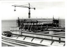 Formaat : 13 x 18 cm. - Bouwen van de toneeltoren van het vierde Kursaal. FotoΒ van uit het "Hotel Wellington".