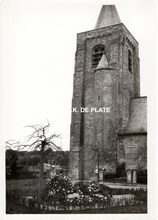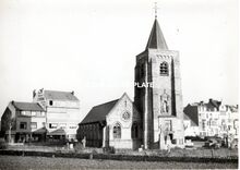 Formaat : 13 x 18 cm. Bunker uit de Tweede Wereldoorlog tusen de huizen in de Poststraat. Achteraan een vleugel van de Rijks Middelbare School voor meisjes of in de volksmond de "Ecole Moyenne".