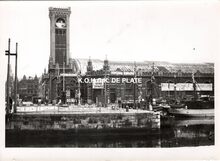 Formaat : 13 x 18 cm. - Het tweede spoorwegstation, naar het ontwerp van Felix Laureys en was een uitbreiding van het eerste station Oostende-stad dat geΓ―ntegreerd werd. Het station werd op 30 juli 1882 ingehuldigd en afgebroken in 1956. Na 1946 werd het gebouw gebruikt als evenementenhal, Alberthal genoemd.