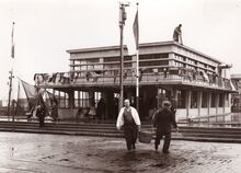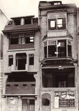 Ruines van tijdens de Tweede Wereldoorlog vernielde gebouwen op de Zeedijk te Mariakerke. Deur- en vensteropeningen werden dichtgemetst.In het gebouw links een observatiepost tegen eventuele geallieerde landingspogingen. De twee affiches laten ons toe de foto te dateren in de periode 1957. FranzΒ Althoff was in Oostende met zijn circus in juli 1957Β en JohnnieΒ Ray trad op in het Casino-Kursaal in augustus 1957.