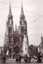Het Sint Petrus en Paulusplein met op de achtergrond de gelijknamige kerk en vooraan het monument voor de oorlogsslachtoffers.